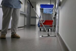 C’est l’une des actions phares de la démarche écoresponsable de la Maternité : depuis avril 2024 les sols sont nettoyés uniquement à l’eau, sans aucun produit détergent.